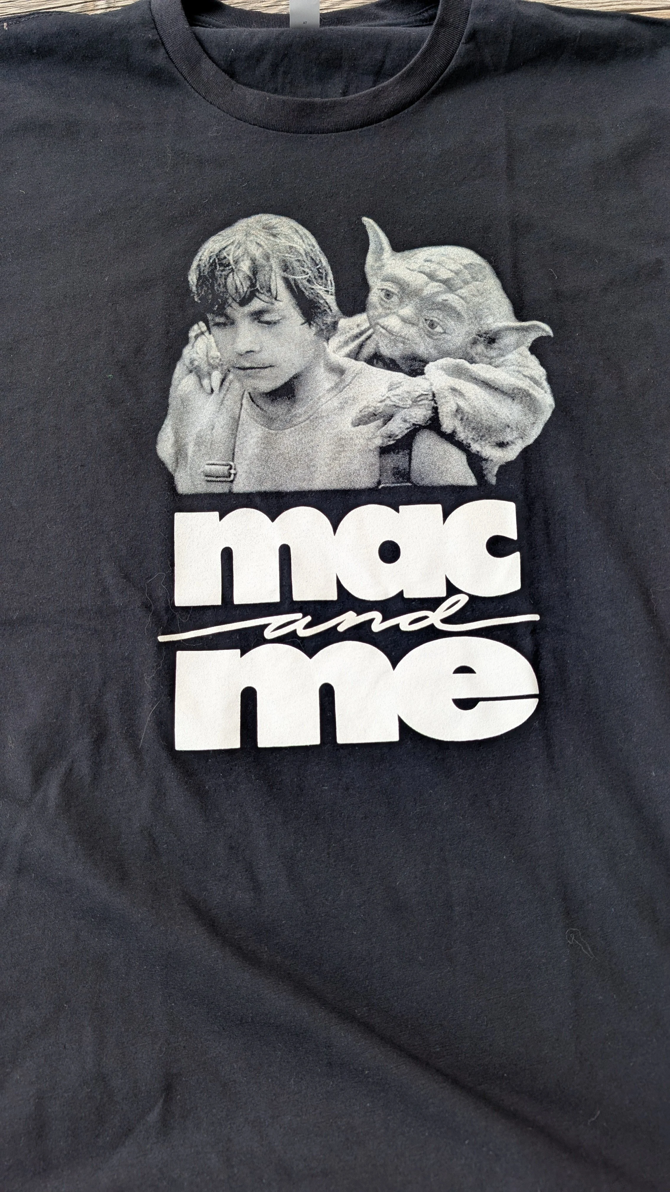goods › Mac and Me tee Image 1 of 2 Image 2 of 2 Mac and Me tee Sale Price: $20.00 Original Price: $28.00 I thought it was dumb and funny, I have a few left.One color screen print on 100% cotton Belle Canvas tee. Size: Small Medium Large XLarge Add To Cart Added! I thought it was dumb and funny, I have a few left.One color screen print on 100% cotton Belle Canvas tee.